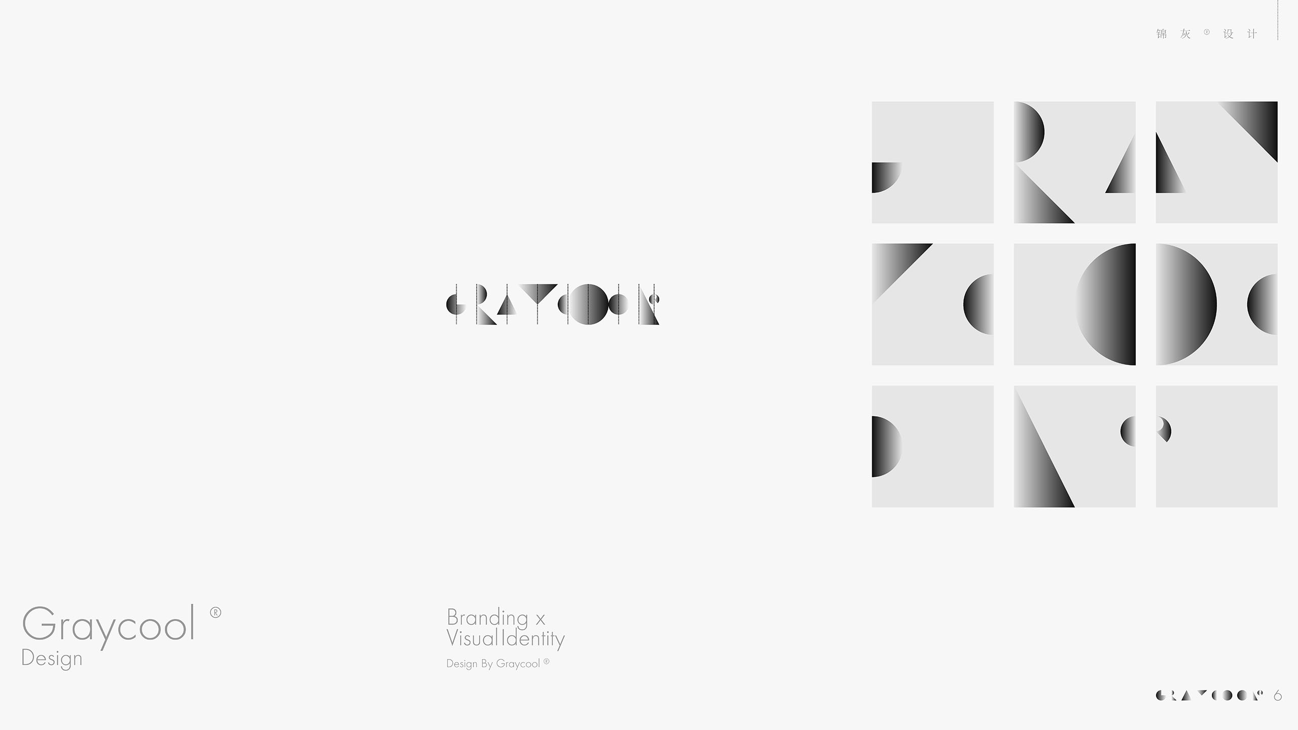 100年前,在包豪斯基础课上,学生使用最基本的几何图形(圆、三角和正方)完成复杂的平面构成。用简单构筑复杂,一代代设计师在百年间建立了工业文明。洗尽铅华,锦灰®用同样的圆、三角和正方完成了Graycool®的LOGO绘制。锦灰®的品牌色是灰,是一道黑白渐变上除黑白外的颜色集合。光影让色彩有了灰度变化,色彩有了灰度变化,人眼中的世界才变得立体完整。锦灰®的辅助图形截取LOGO局部,运用对比构成的方法,在二维平面上制造三维空间感。